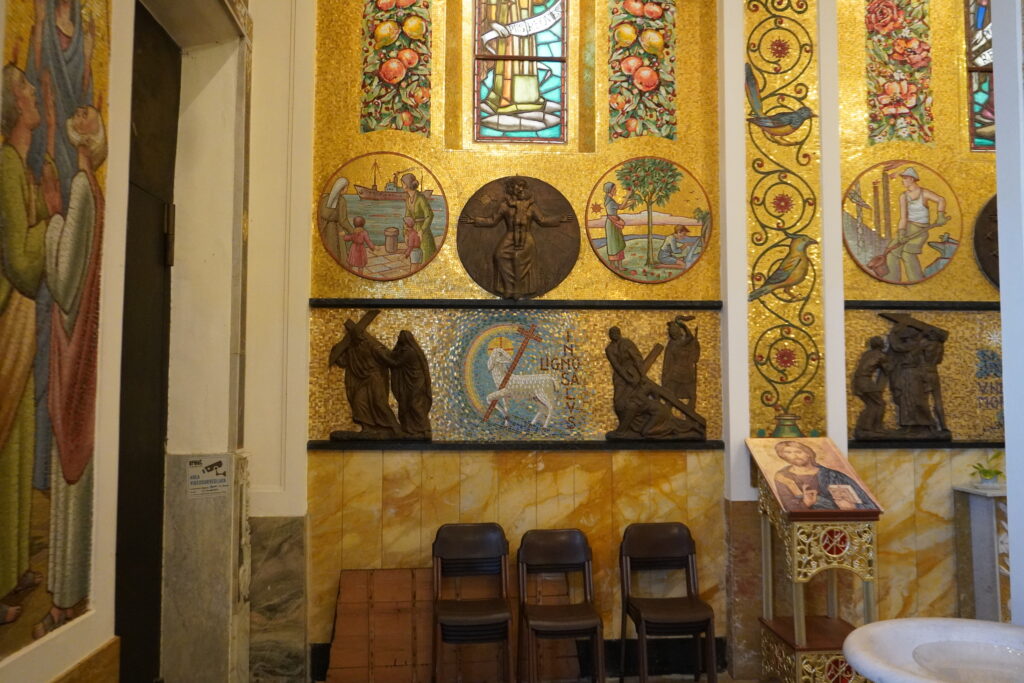 Accanto la via Crucis del Cristo, vi è la via Crucis dell’uomo, rappresentata attraverso rappresentazioni che indicano le diverse età: fanciullezza, giovinezza, maturità e vecchiaia, quattro momenti della vita dell’uomo inseriti nell’alternarsi delle quattro stagioni: la primavera, l’estate, l’autunno e l’inverno.